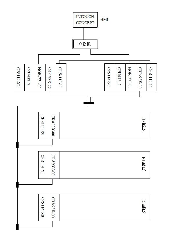 b) 工业以太网层:同样由 OSM 构成的环形光纤网络,把服务器和工程师站配置的通讯处理器(CP1613)和 5 个控制系统主站(DPU)配置的通讯处理单元(CP 443-1)连接起来,实现服务器、工程师站与各控制系统主站的 CPU 之间的通讯。