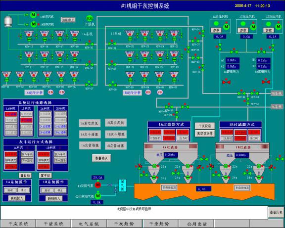 本控制系统分为 1 号和 2 号两套完全相同的烟气脱硫系统,大约有 1556 个控制设备:模拟输入信号(AI)410 点、输出信号(AO)16 点,热电阻(RTD)163 点,信号类型有 4~ 20 mA,1~5 VDC,和热电阻输入信号等。开关量输入信号(DI)1534 点,输出信号(DO) 726 点。控制对象有阀门、电机和 PID 执行机构等,基本包括了过程控制系统和顺序控制系统中所有典型设备,是一个复杂的大型控制系统。