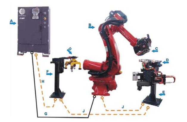 在j9九游会官网入口汽车焊接工艺中,点焊占整车焊焊接的很大一部分,自动化生产线焊接系统主要由点焊机器人系统系统组成。点焊机器人系统包括机器人本体、机器人控制器、点焊控制器、自动电极修磨机、自动工具交换装置、气动点焊钳、水气供应的水气控制盘等。